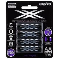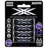 Sanyo XX Battery Powered by eneloop, 2500mAh High Capacity, 4 Pack AA Ni-MH Pre-Charged Rechargeable Batteries